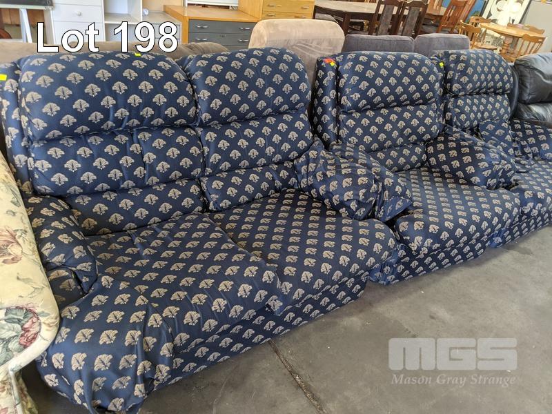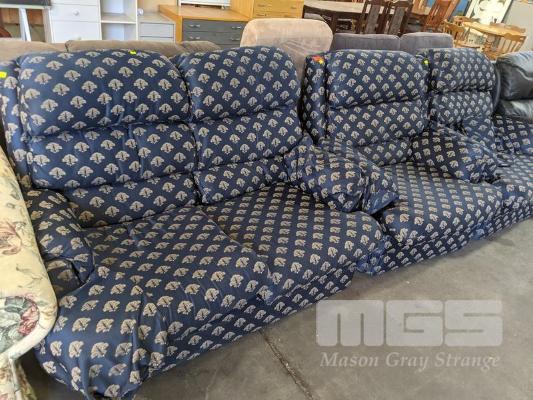 BLUE FABRIC 3 PIECE LOUNGE SUITE INC 2 SEATER & PAIR SINGLES