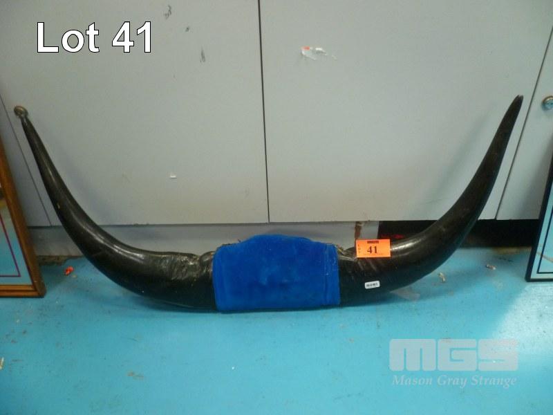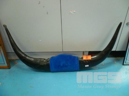 LARGE MOUNTED BUFFALO HORNS, 790mm (W)