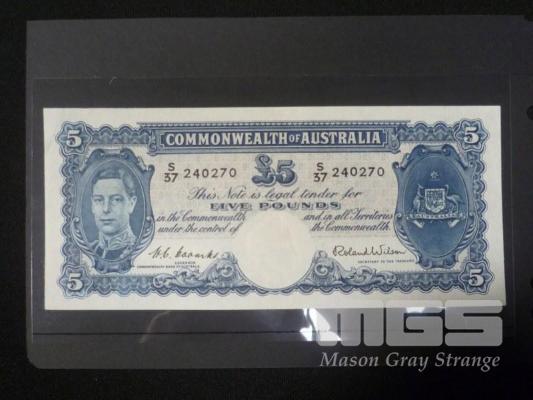 1952 5 POUND NOTE COOMBS WILSON HIGH GRADE APPEARS AUNC