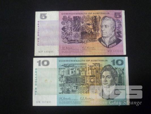 1967 $5 +$10 DOLLAR NOTES COOMBS RANDALL KEY DATES NOTES MIXED GRADES