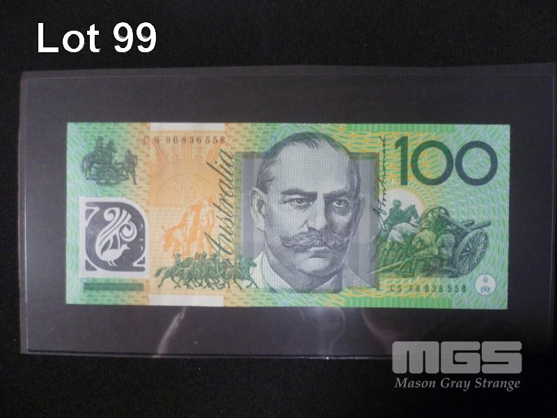 1996 $100.00 TEST NOTE LAST PREFIX "CS96" FRAZER EVANS HIGH GRADE