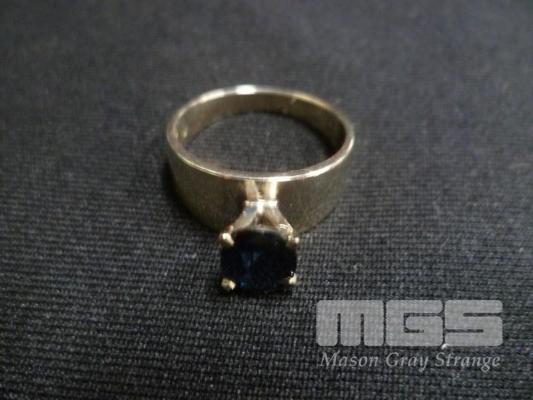 WHITE GOLD RING MARKED 14K SET WITH BLUE SAPHIRE