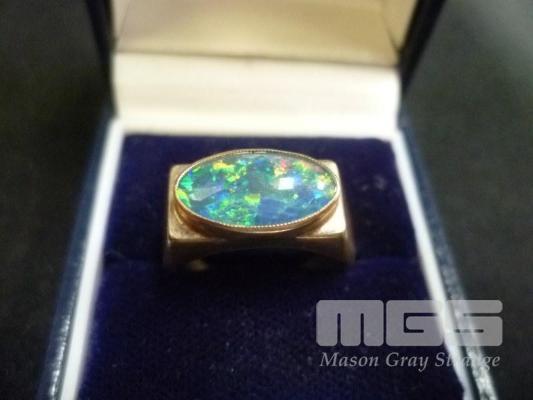 GOLD COLOURED RING (UNMARKED) SET WITH OPAL TRIPLET