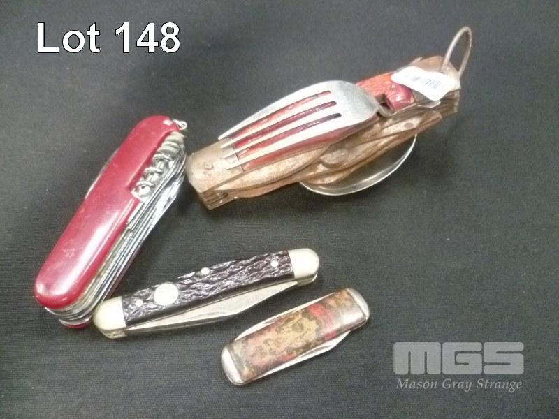 4 x VINTAGE POCKET & SURVIVAL KNIVES