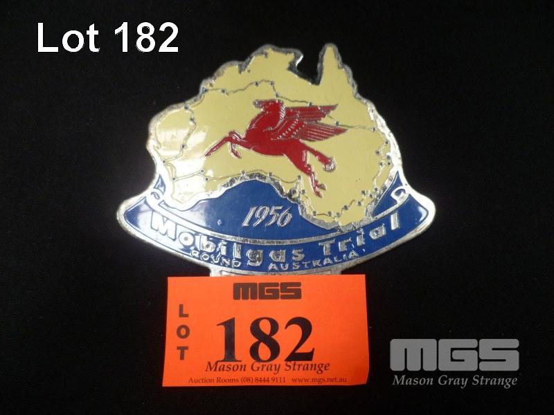 1956 MOBIL TRIAL ENAMEL CAR GRILL BADGE