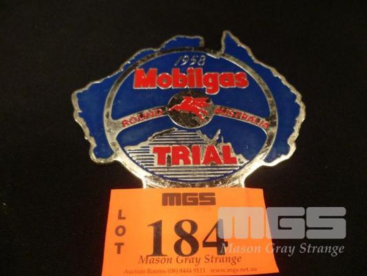 1958 MOBIL GAS TRIAL ENAMEL CAR GRILL BADGE