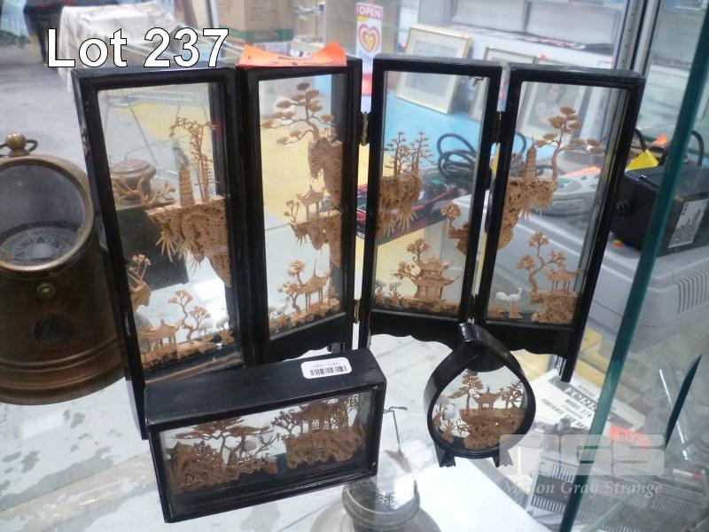 3 x ORIENTAL CORK DIORAMAS, 21.5cm TALLEST