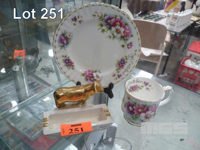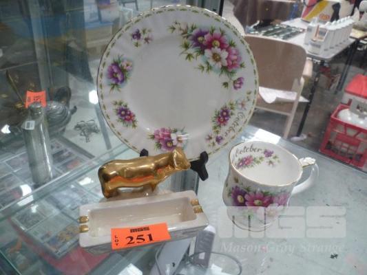 WEMBLEYWARE BULL ASHTRAY & ROYAL ALBERT COSMOS FLOWER OF THE MONTH SERIES CUP & SAUCER