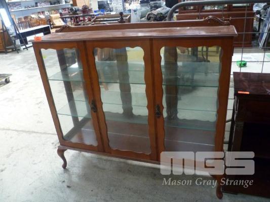 MAHOGANY CHINA CABINET, 2 DOOR, MIRROR BACK, 2 x GLASS SHELVES