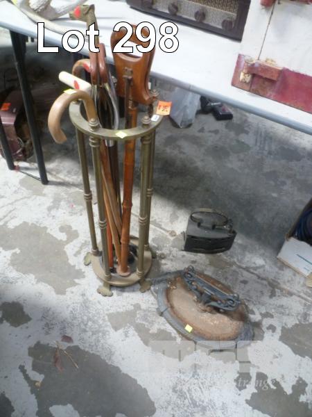 CAST IRON BOOT SCRAPER, COAL IRON, UMBRELLA STAND WITH WALKING AIDS