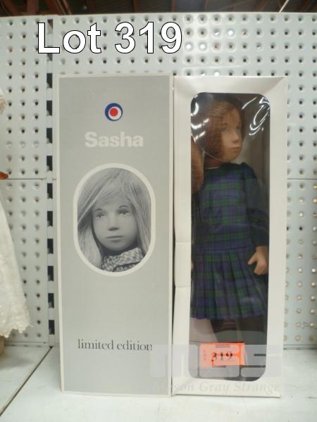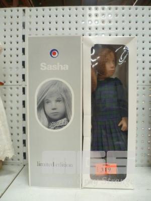 2 x SASHA LIMITED EDITION DOLLS, No 183A & 184A, 1 WITH GUITAR, DARK BLONDE HAIR, 1 x REAL HAIR KILTIE, MADE IN ENGLAND, NEW IN BOX
