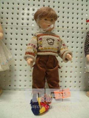 ORIGINAL KATHE KRUSE GERMAN PUPPE DOLL, YOUNG BOY ON STAND, DRESSED IN JUMPER, PANTS & SHOES