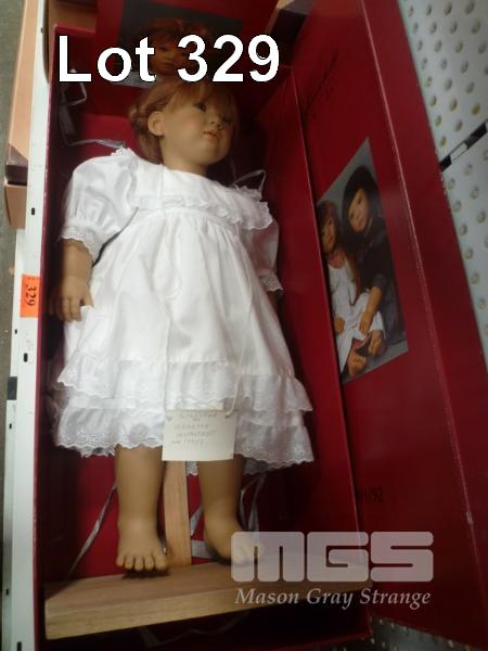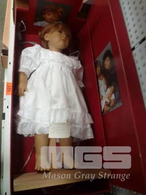ANNETTE HIMSTEDT PUPPEN KINDER, LILLIANE DRESS DOLL ON DISPLAY STAND, 2' (H), WHITE LINEN DRESS, NEW IN BOX