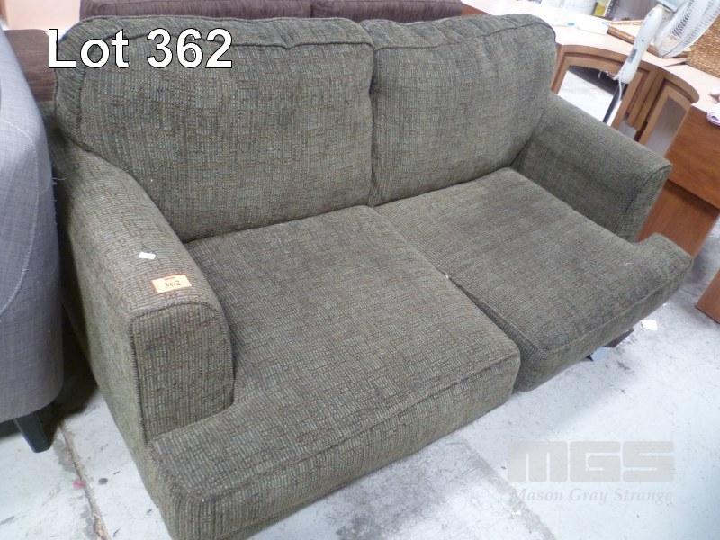 GREEN/BROWN FABRIC LOUNGE, 2 SEATER