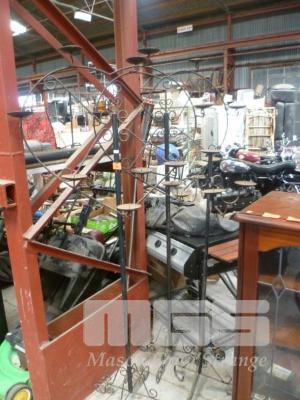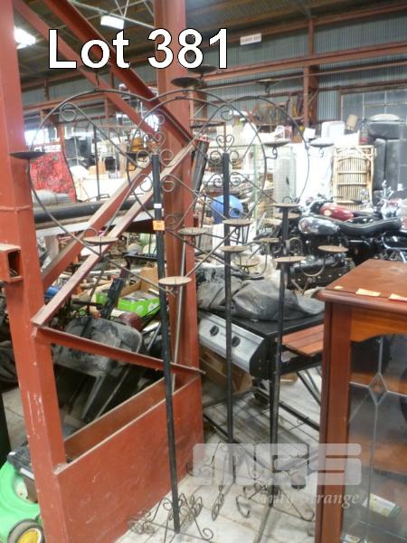 3 x SCROLLED METAL CANDLE STANDS, 183cm TALLEST