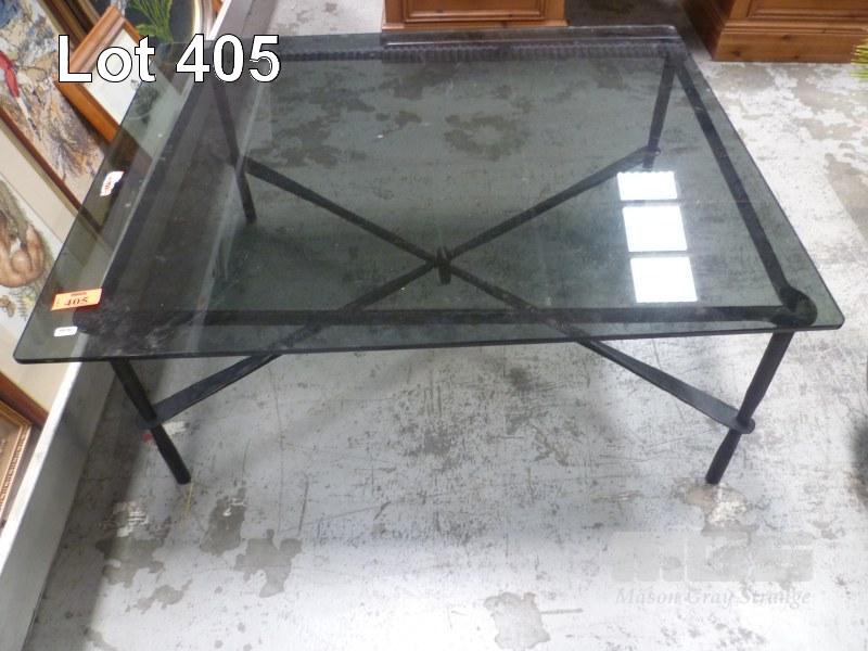 SQUARE COFFEE TABLE, METAL FRAME, GLASS TOP