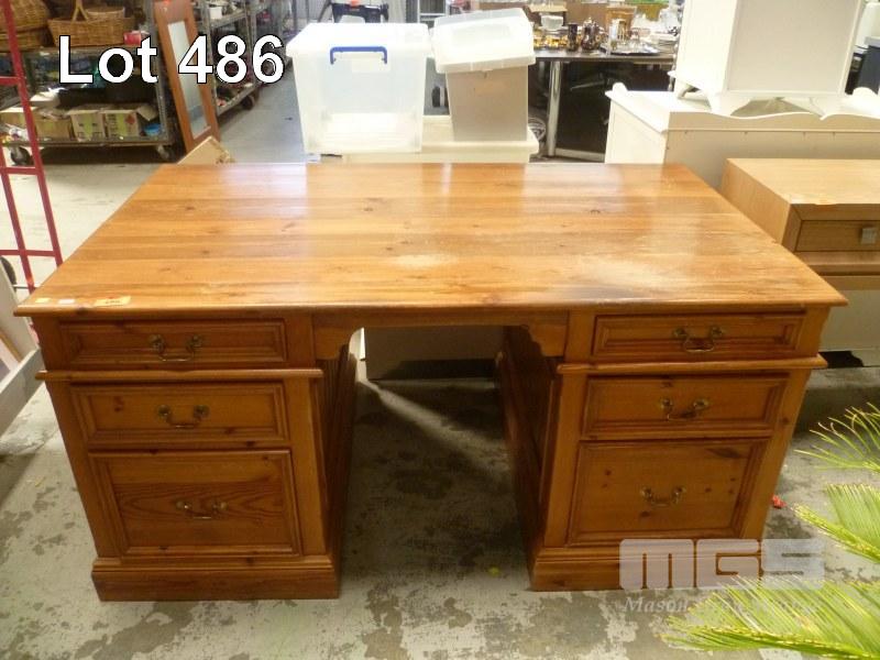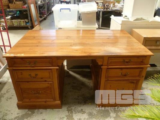 PINE EXECUTIVE DESK, 3 PIECE, 6 DRAWER