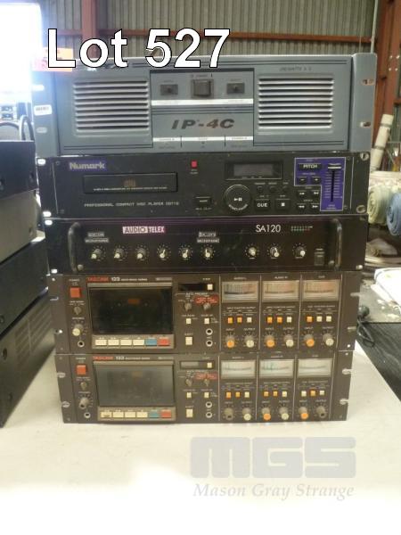 5 x RACK MOUNT AUDIO UNITS INC 2 x TASCAM 133 MULTI IMAGE SERIES RECORDING TAPE DECKS, AUDIO TELEX 6 CHANNEL MIXING POWER AMPLIFIER, SA-120, NUMARK PROFESSIONAL CD PLAYER, CD710 & PEAVEY POWER AMPLIFIER 1P-4C