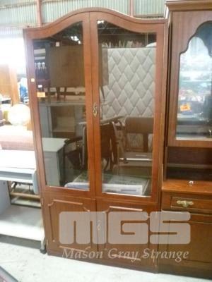 MAHOGANY DISPLAY CABINET, 2 DOOR UNDERSTORAGE & 2 x GLASS SHELVES