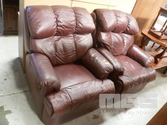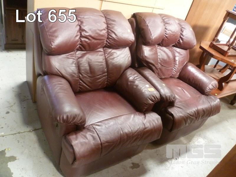 PAIR BURGUNDY LEATHER RECLINERS