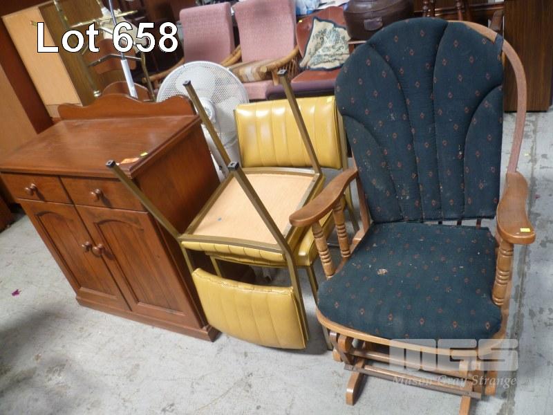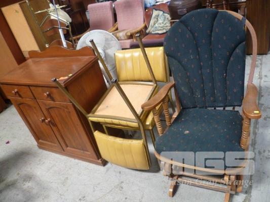 DEXTER ROCKER, PINE CABINET & 2 x RETRO DINING CHAIRS