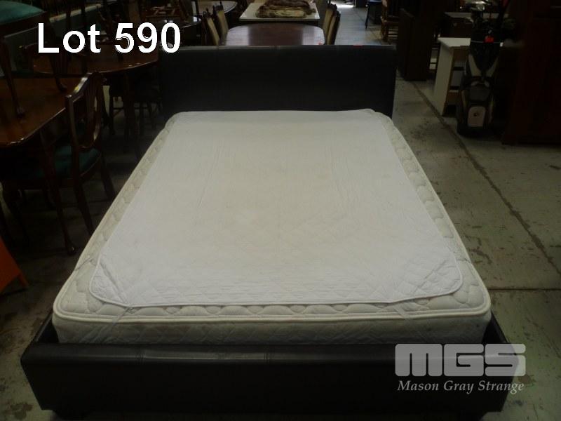 BLACK VINYL QUEEN SIZE BED WITH MATTRESS