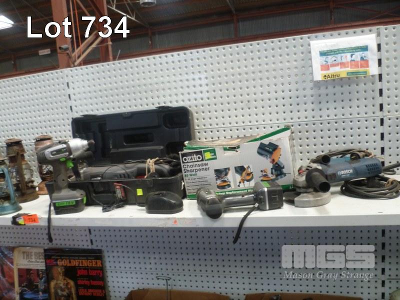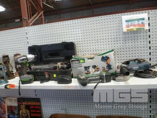 OZITO BISCUIT JOINER, 2 x OZITO CORDLESS DRILLS & 2 x BOSCH ANGLE GRINDERS