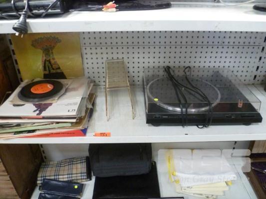 YAMAHA NATURAL SOUND STEREO TURNTABLE, TT-230 WITH ASSORTED RECORDS & RECORD STAND