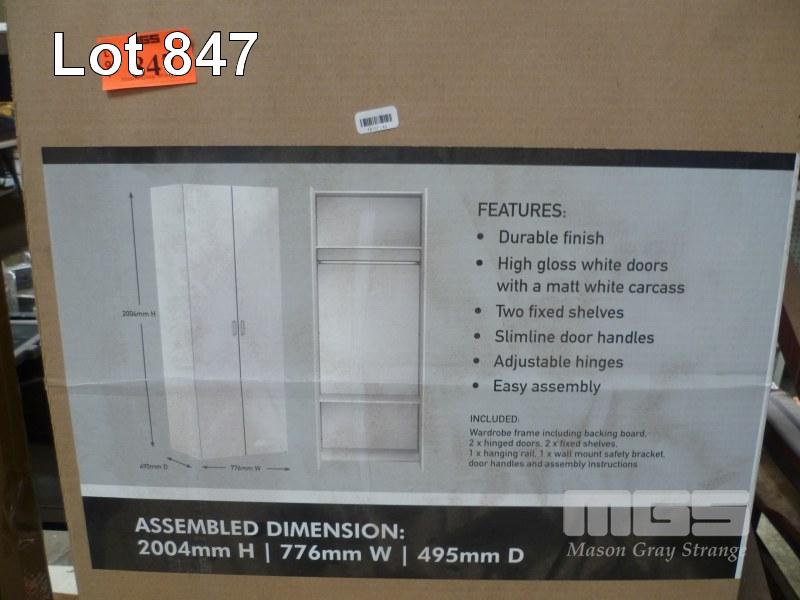 WHITE HIGH GLOSS WARDROBE, 2 DOOR, FLAT PACKED