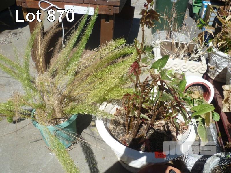 ASSORTED CONCRETE POTS, SOME WITH PLANTS