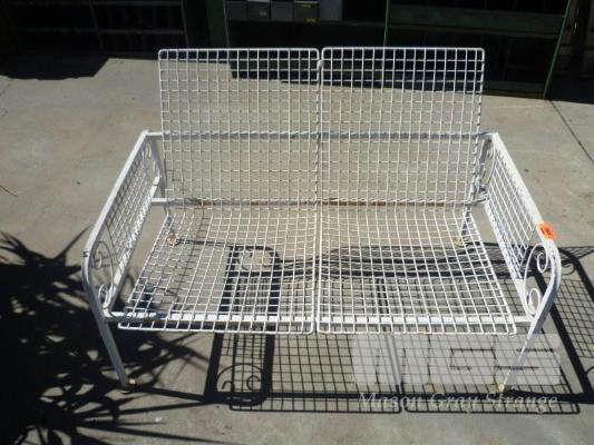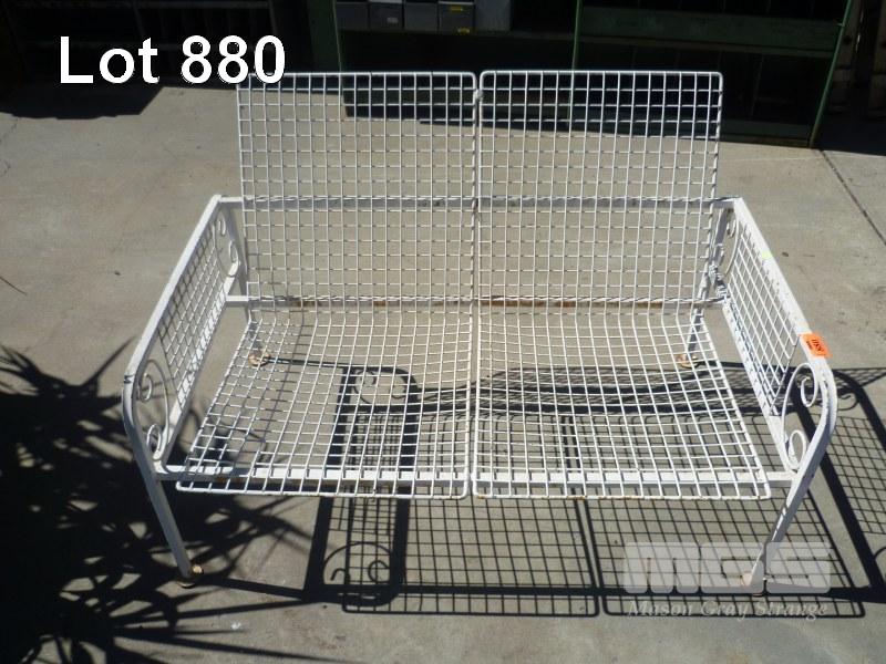 WHITE METAL/WIRE FRAME OUTDOOR BENCH