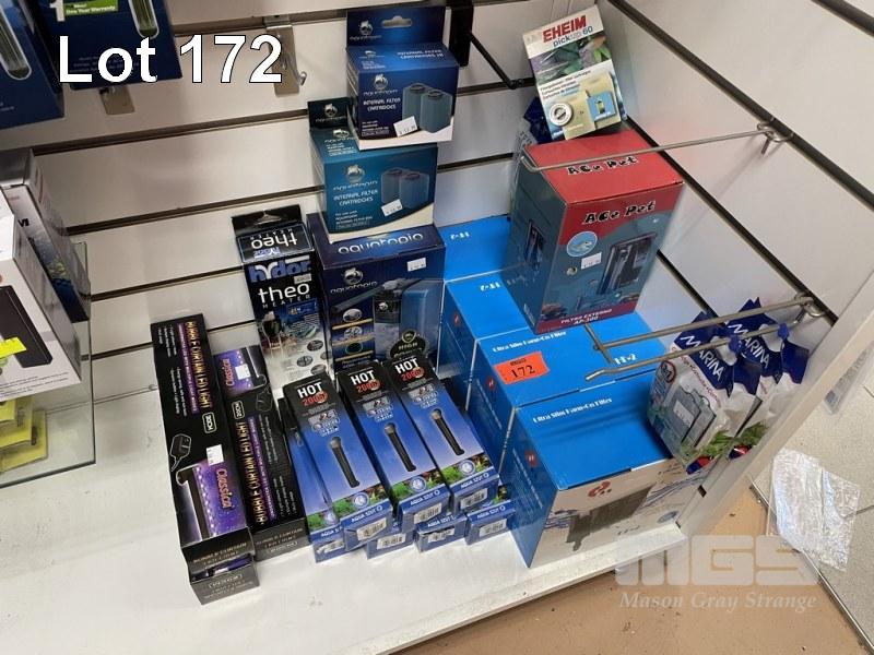 ASSORTED ACCESSORIES, 4 x SMALL FILTERS, 3 x BUBBLE LED LIGHTS, 8 x HEATERS, ETC
