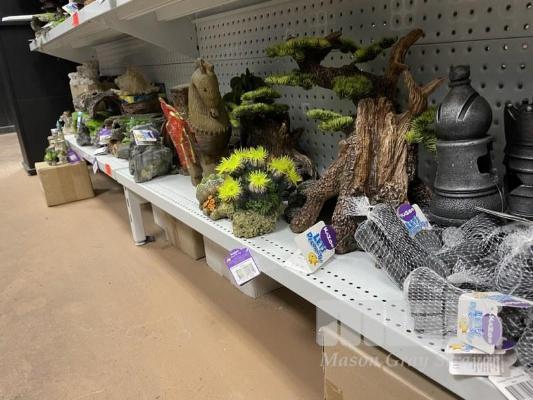 ASSORTED AQUARIUM DECORATIONS, SMALL TO LARGE, CONTENTS SHELF