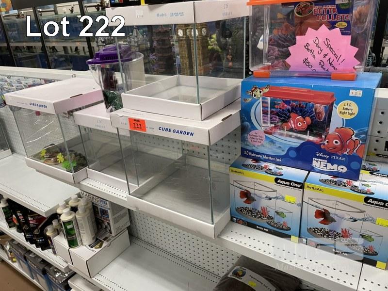4 x CUBE GARDEN AQUARIUMS, 4 x 3-D NEMO UNDERWATER ADVENTURE TANKS WITH LED LIGHT & 6 x BETTARC AQUA ONE SMALL TANKS, NEW
