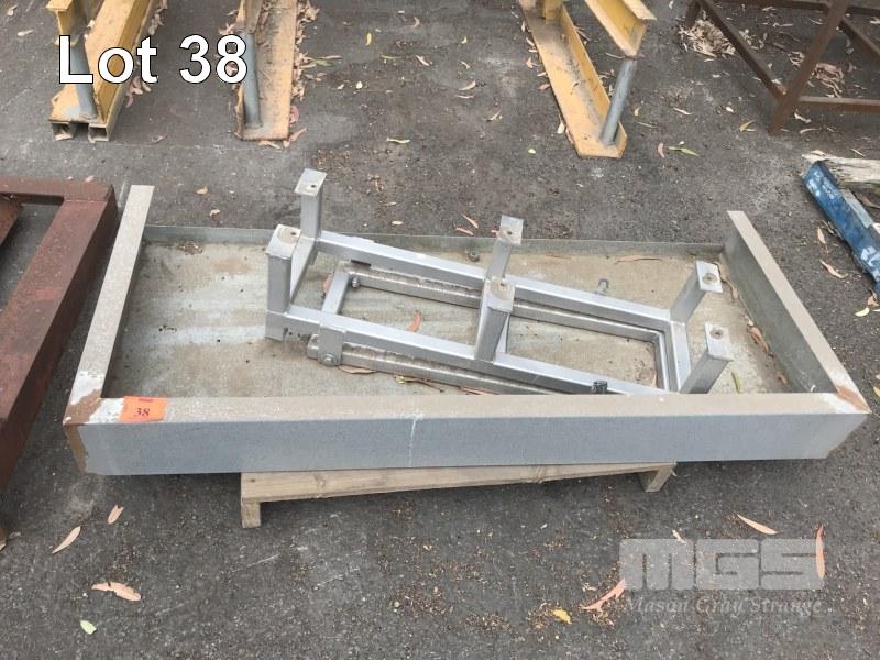 FABRICATED GALV TRAY, 155 x 66cm & HINGED TOP STAND, 95 x 30cm