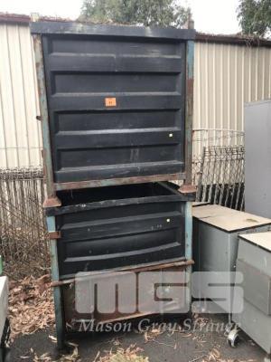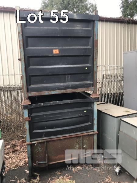 PAIR STACKABLE SCRAP BINS, STEEL FRAME, POLY WALL WITH LOWER DUMP DOOR, 110 x 110 x 120cm (H)