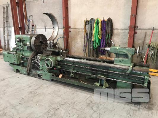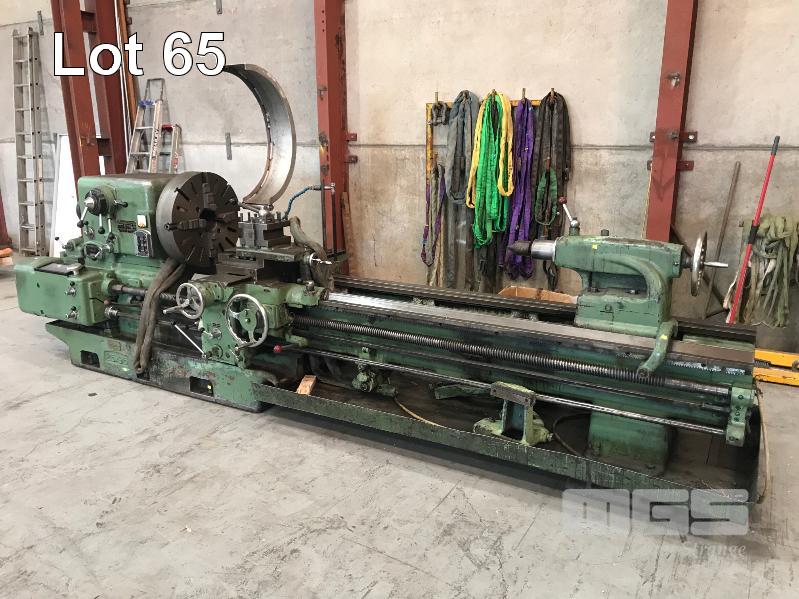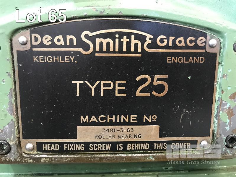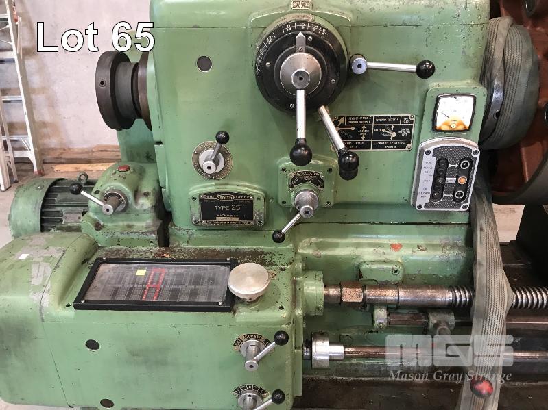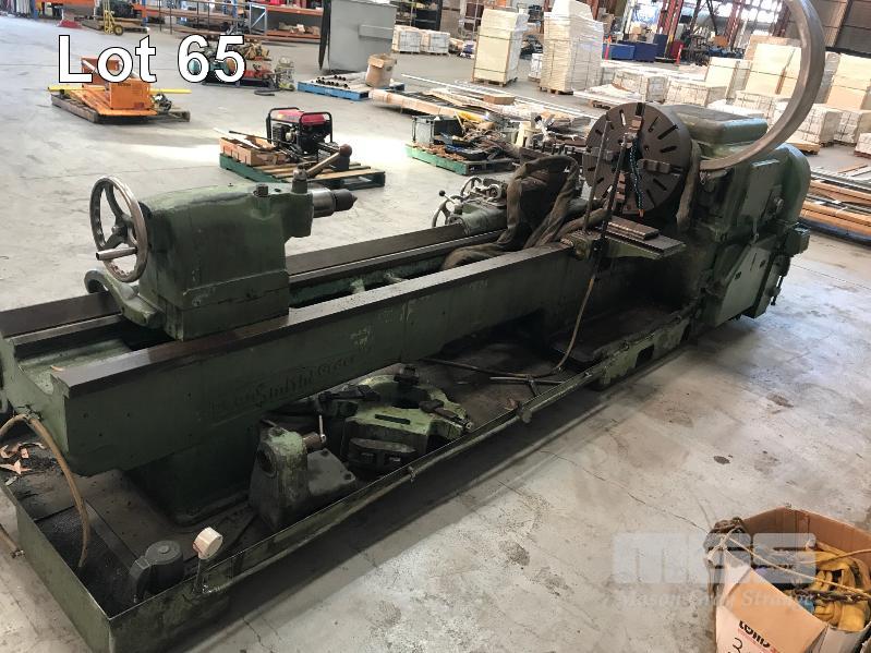 GAP BED LATHE, DEAN SMITH & GRACE TYPE: 25 V-BED 96" (244cm) BC 4" (100mm) BORE 25" SWING OVER BED APROX 48" SWING OVER GAP 90-345 RPM 25" (635mm) 4 JAW CHUCK HAND CRANK TAIL STOCK #5MT 3 WAY QUICK CHANGE TOOL POST THREAD CUTTING POWER FEED COOLANT PUMP 415V WITH 200mm 3 POINT STEADY 120mm 3 POINT TRAVELING STEADY & TRAVELING TAIL STOCK SUIT CROSS SLIDE