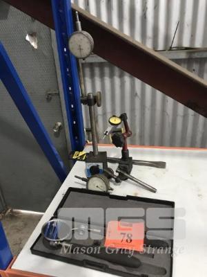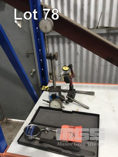 2 x MAGNETIC BASES, 3 x DIAL INDICATORS &INSPECTION MIRROR WITH MAGNETIC REACH TOOL