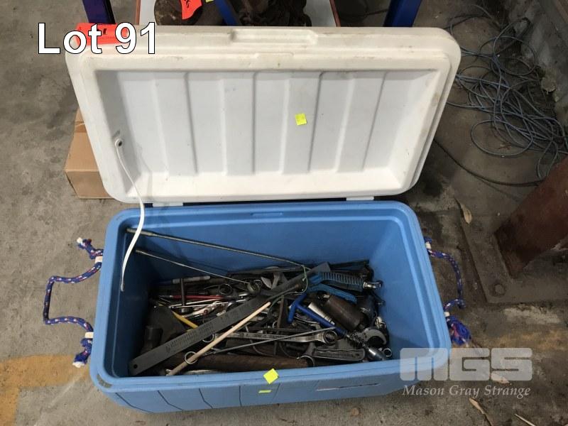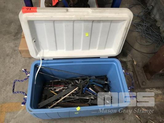COLEMAN ESKY & CONTENTS ASSORTED HAND TOOLS, SPANNERS, SQUARES, RULERS, ETC