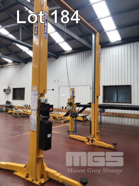 2 POST CLEAR FLOOR HOIST, MOLNAR MOD: M245-A-SSHSCS S/NO: 10727 DOM: 4/2016 SWL: 4,500kg 3 PHASE, 415V (DISMANTLED FOR TRANSPORT)
