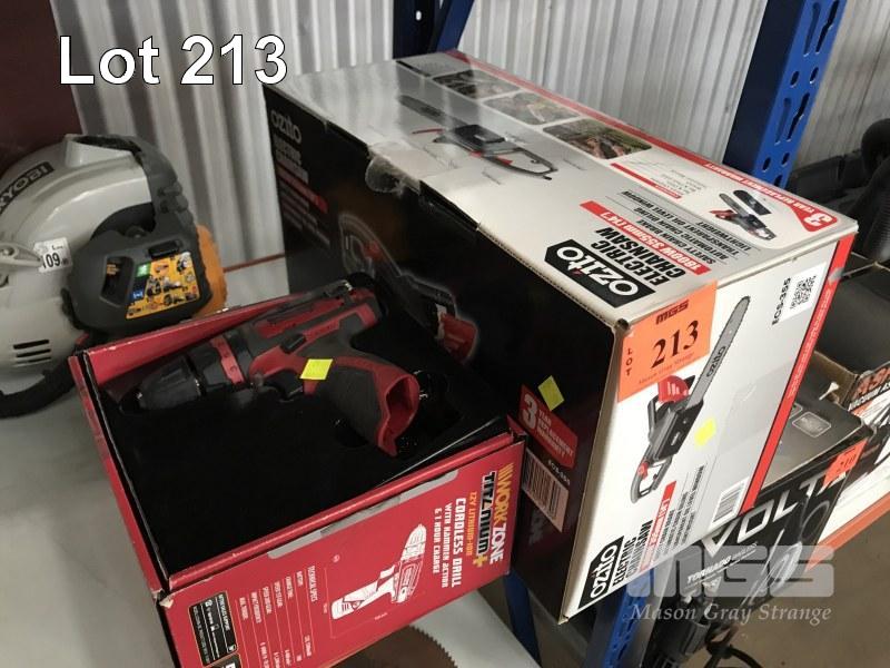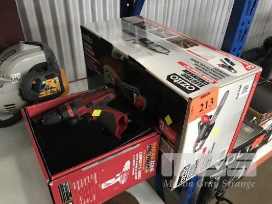 14" CHAINSAW, OZITO, 240V WITH WORKZONE 12V DRILL, 2 x BATTERIES & CHARGER