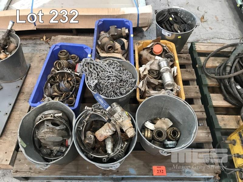 ASSORTED PIPE FITTINGS, PULLEYS, CHAIN, HOSE CLAMPS, ETC, 1 x PALLET