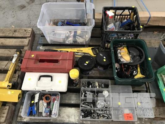 ASSORTED HAND TOOLS, FASTENERS, PRESSURE PACKS, ADHESIVES, ETC, 1 x PALLET