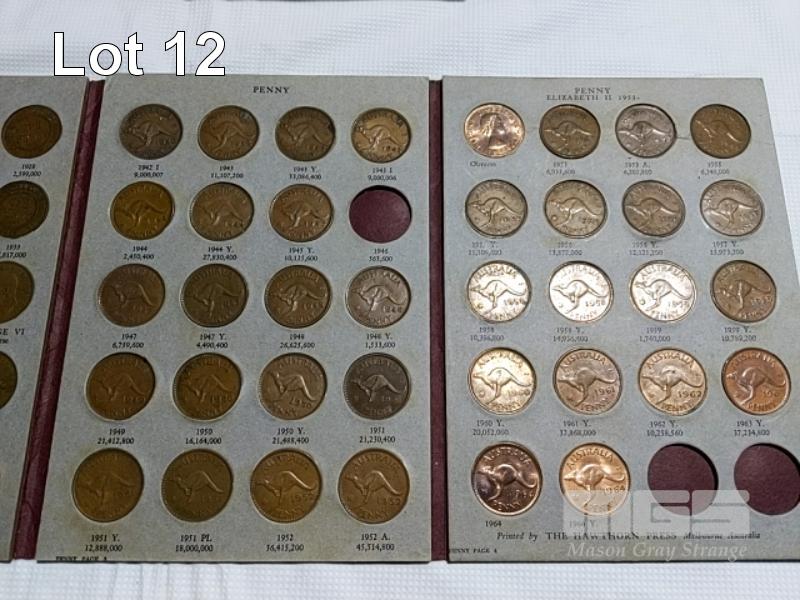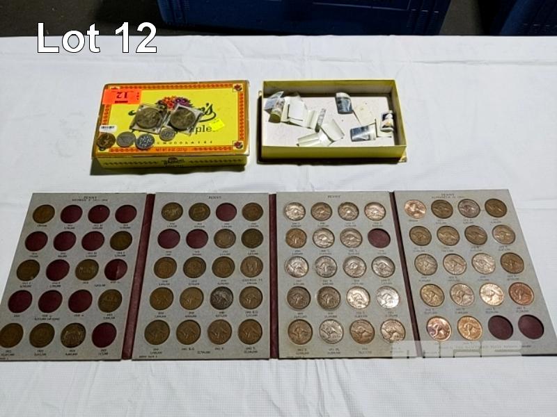IN-COMPLETE SET AUSTRALIAN PENNYS, ASSORTED COINS & STAMPS