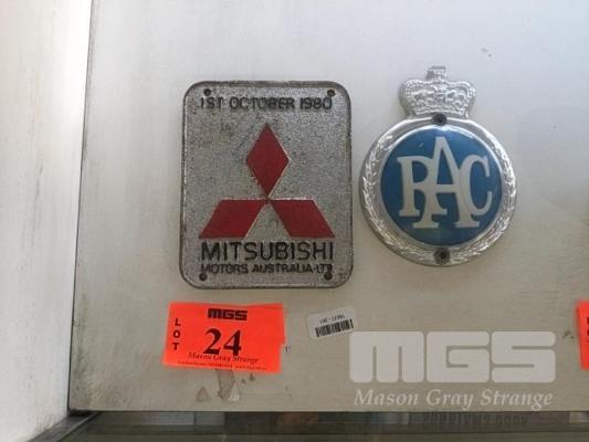 VINTAGE MITSUBISHI CASTED PLAQUE & RAC EMBLEM