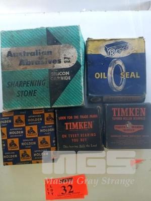 NEW OLD STOCK PARTS IN ORIGINAL BOXES INC HOLDEN, TIMKEN, REPCO OIL SEAT & SHARPENING STONE