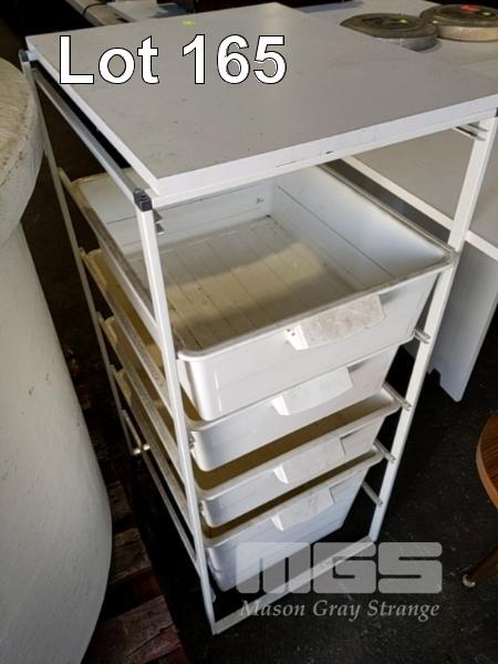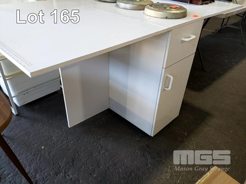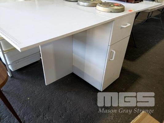 HORN WHITE LAMINATE SEWING TABLE, DROP SIDE, SINGLE DOOR/DRAWER & STEEL FRAMED DRAWER UNIT