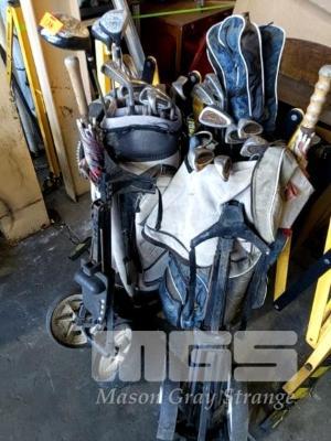 DYNA WOODS & IRONS IN GOLF BAG & BROSNAN WOODS & IRONS IN GOLF BAG