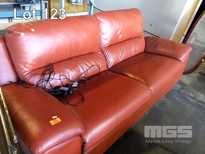 DEEP ORANGE LEATHER UPHOLSTERED 2.5 SEATER SOFA