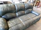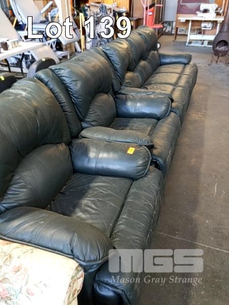 GREEN LEATHER 3 PIECE LOUNGE SUITE COMPRISING 3 SEATER LOUNGE & PAIR MATCHING ARM CHAIRS